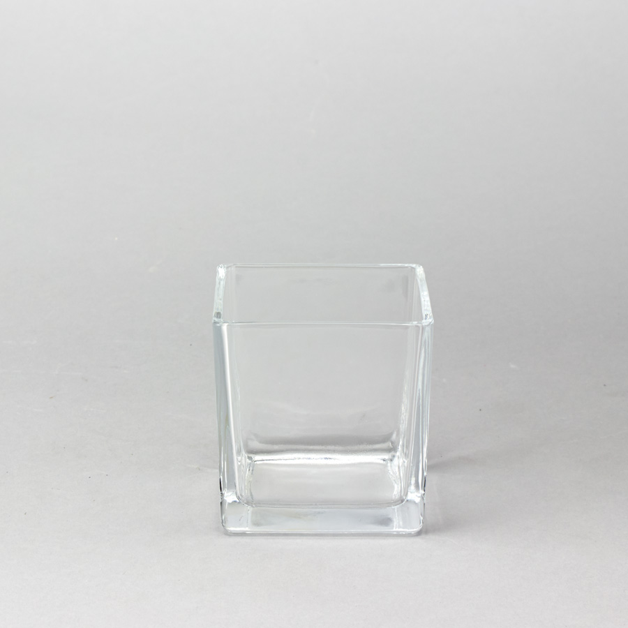 Clean lines, a square shape, and a concaved look to the bottom of the glass create a simple, modern decoration for a medium sized event table. Ideal for candles, this 4” container can easily be transformed with a little crafting or when placed among floral arrangements. This cube container also serves as a wonderful flower vase.