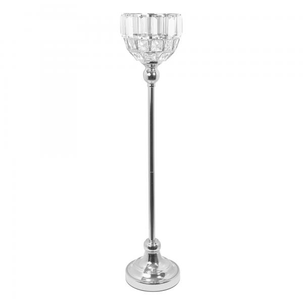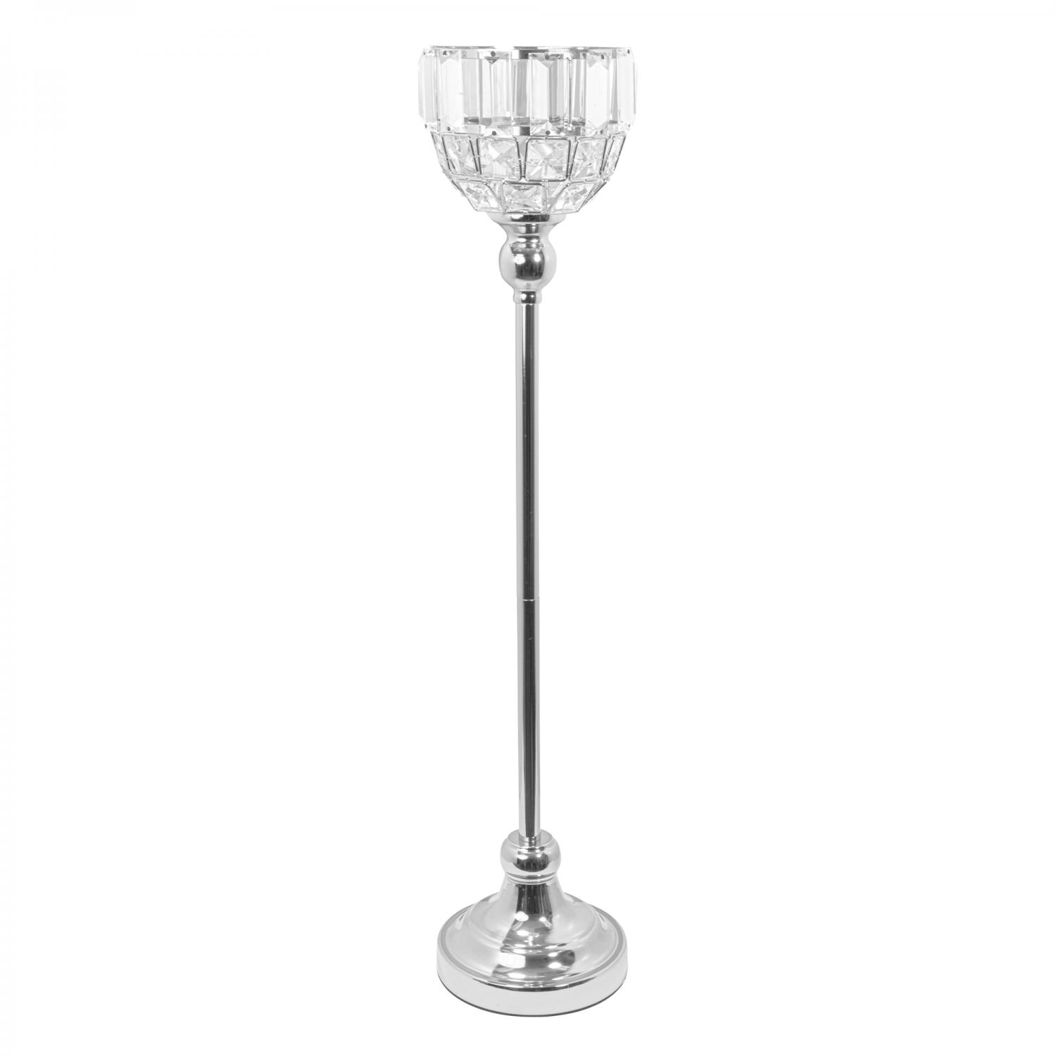 Decostar™ Metal Bowl Candle Holder With Crystal 25" - Silver[PFO-74-0443SV]