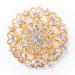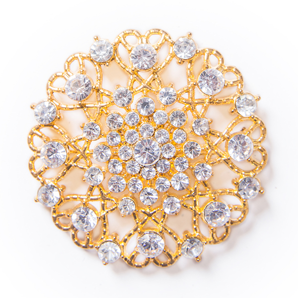 DecoStar™ Ornate Diamond-Encrusted Round Brooch in Gold These gold round ornate diamond-studded brooches are a great way to take your decorations to the next level. This intricate design of gold and diamonds weaves and loops around into a gorgeous piece that will make any decor elegant. You can use the metal backing pin to make attaching this brooch easy. Size: 6cm