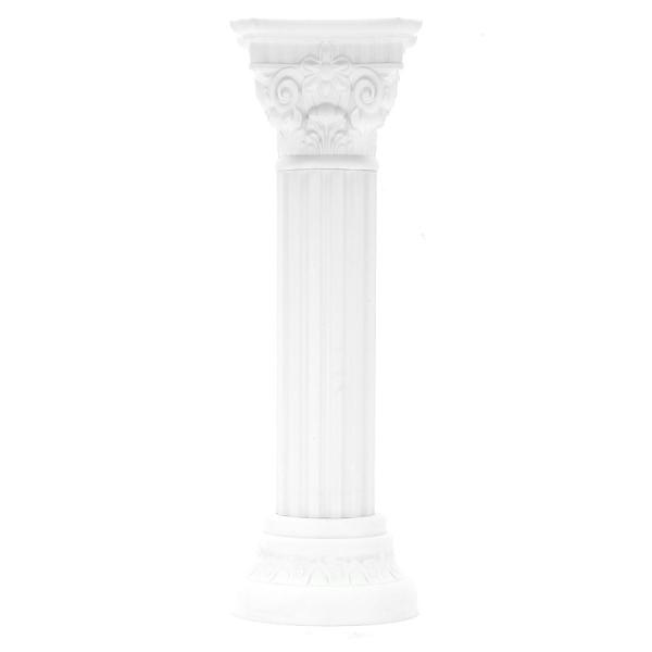 Raise your decorations, centerpieces, or even your cake on these classic Roman pillars. This iconic look, white ridged pillars with intricate patterns at the top and bottom, adds classic elegance to your décor. The light weight plastic makes assembly and set up easy. The material also stores well for reuse.