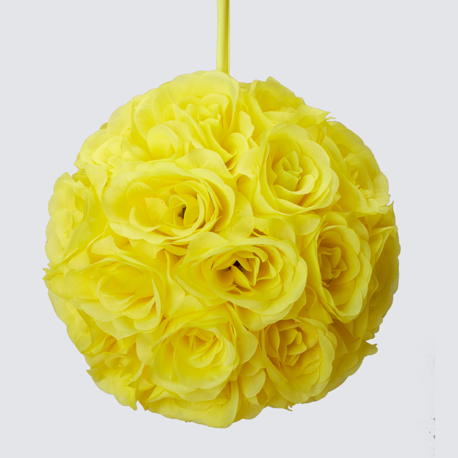 ROSE SILK FLOWER POMANDER KISSING BALL – YELLOW