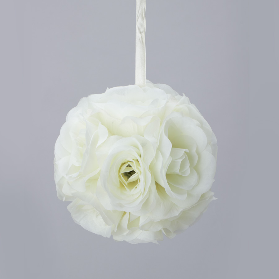 ROSE SILK FLOWER POMANDER KISSING BALL – IVORY