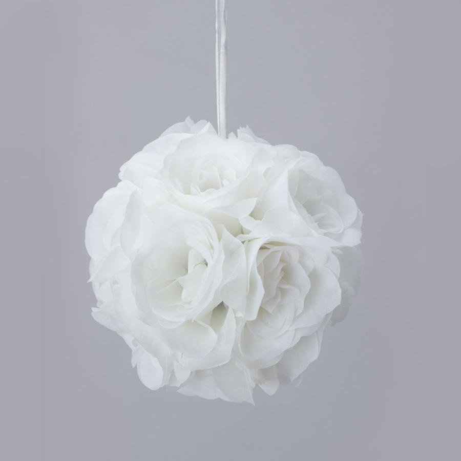 ROSE SILK FLOWER POMANDER KISSING BALL – WHITE