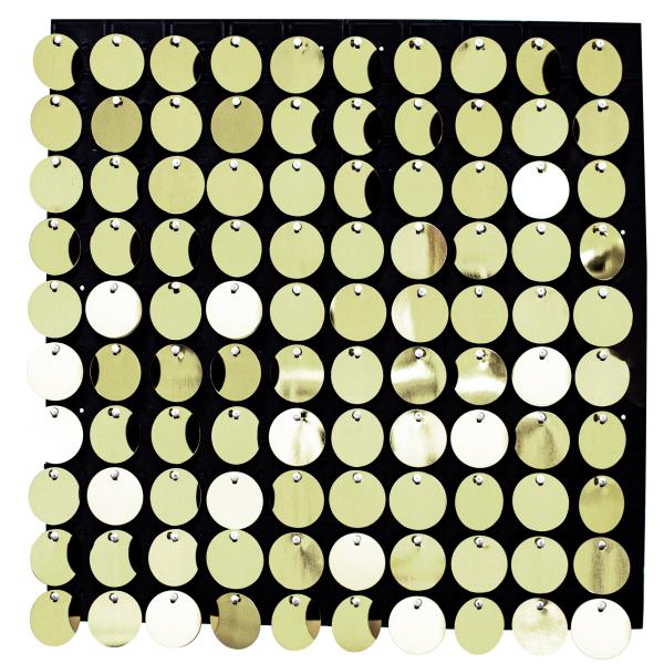 The sequins are attached to a black plastic backing giving them stability and making it possible to use these panels as dividers as well as wall coverings. The backing also creates a wonderful contrast against the bright, shimmering sequins.