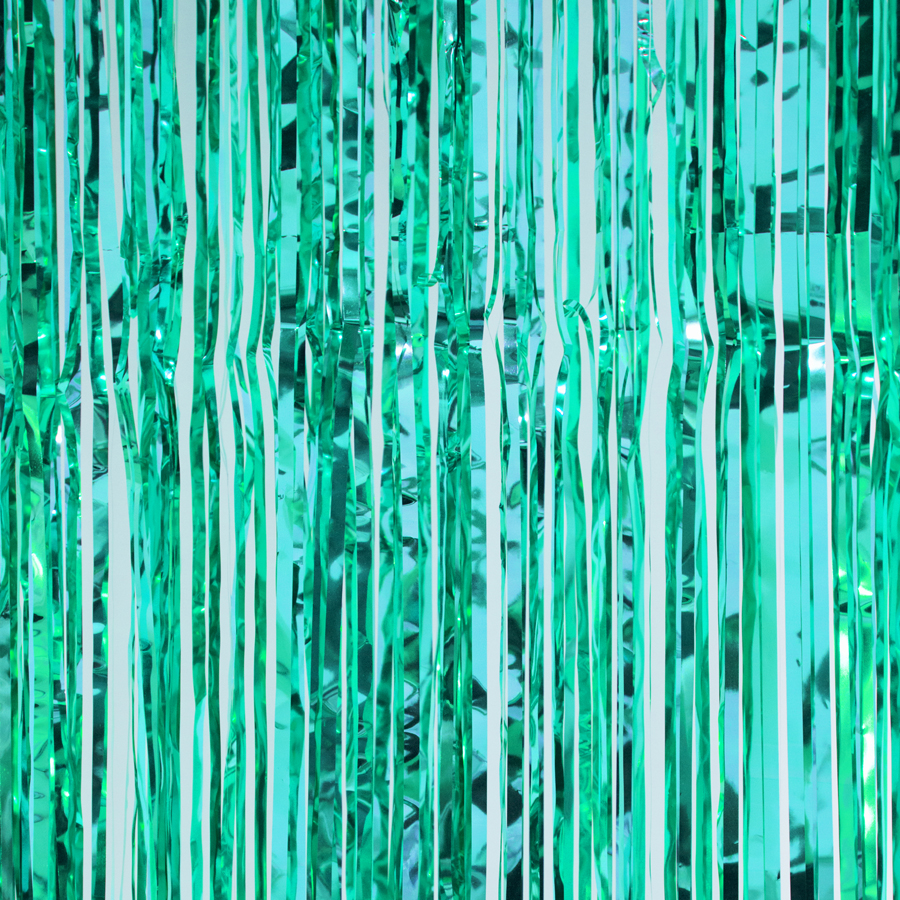 Decostar™ Sparkling Metallic Foil Fringe Curtain 96" - 12 Pieces - Aqua[PFO-72-0009AQ]