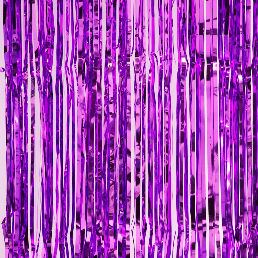 Decostar™ Sparkling Metallic Foil Fringe Curtain 96" 12 Pieces - Purple[PFO-72-0009PU]