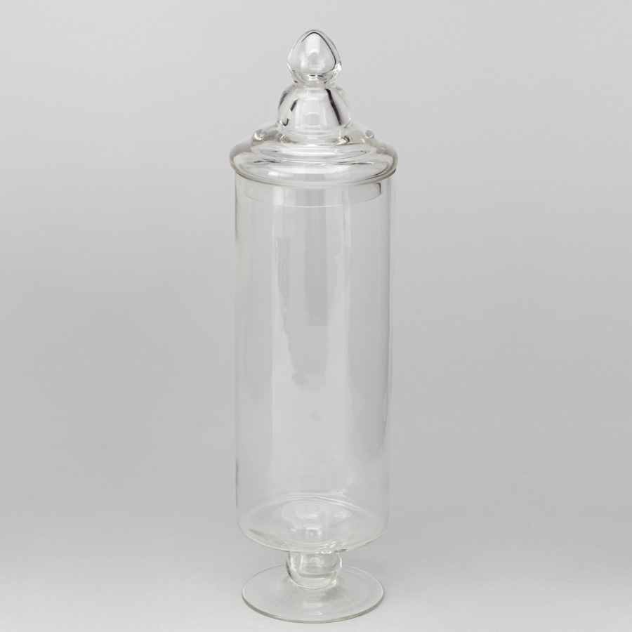 Add a timeless look to your decor with these tall, cylinder shaped apothecary jars. At 17 ¾” tall, with a classic pedestal base, these jars can be used as decorative elements filled with colorful trinkets to match your scheme, or floral elements for a soft look. They are also useful and decorative on your buffet tables, holding party favors, or for a thousand and one different purposes that, with a little imagination, will wow guests.