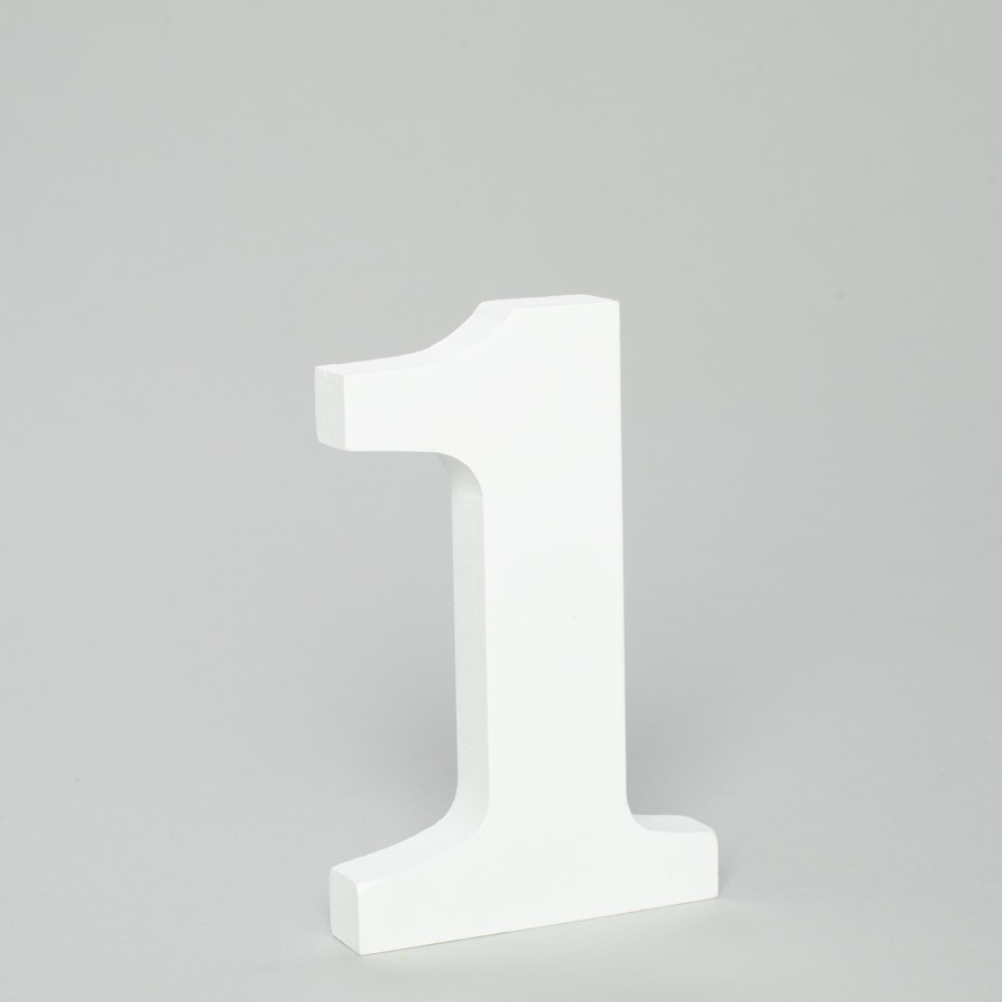 Create number or letter decoration for your events with this free standing, white, wooden 1. Each of our wooden pieces has a flat bottom, making them stand alone, or they can be added to one of our letter bases. The white color makes it easy to match your color theme. Numbers stand 5” tall. Other letters and numbers available, sold separately.