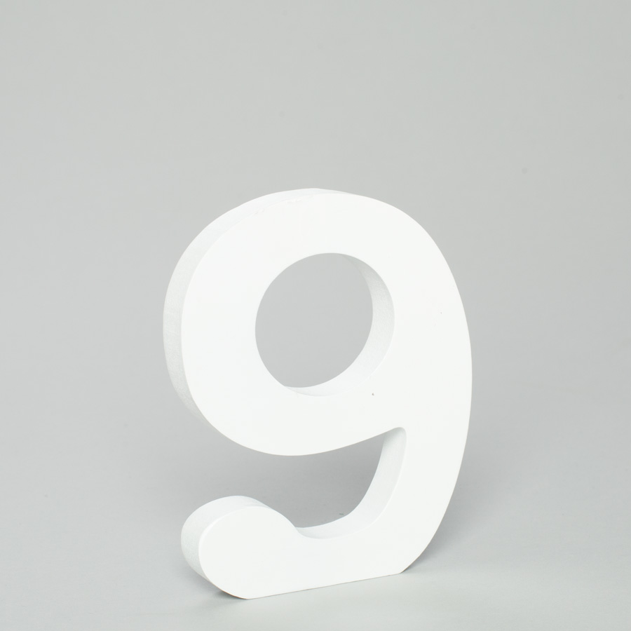 Create number or letter decoration for your events with this free standing, white, wooden 9. Each of our wooden pieces has a flat bottom, making them stand alone, or they can be added to one of our letter bases. The white color makes it easy to match your color theme. Numbers stand 5” tall. Other letters and numbers available, sold separately.