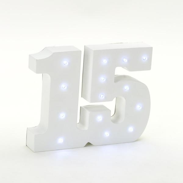 Decostar™ Wooden Vintage LED Marquee Freestanding Number 15 - White[PFO-75-1447WH]