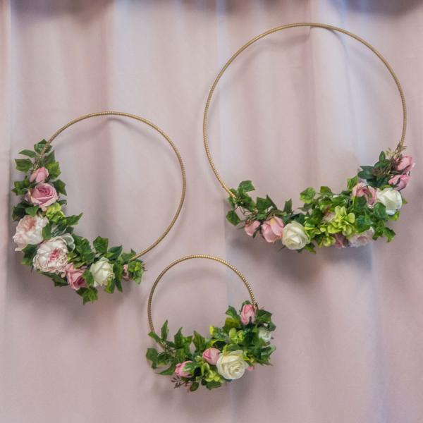 Add some elegance to your event with these wrought iron hoops. They're great for rustic and modern decor alike. Whether wrapping with greenery and flowers or lights and ribbons, they are sure to dazzle onlookers. Get yours today and decorate away!