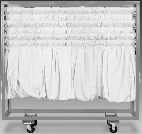 Use this 6-10 or 7-12 foot crossbar cart to keep your crossbars organized and safe under your nose. No more piling or leaning in a corner. This 6-10ft or 7-12ft drape crossbar cart allows you to store up to 80 crossbars of either variety. This cart is made with bare, raw metal and is not powder coated.