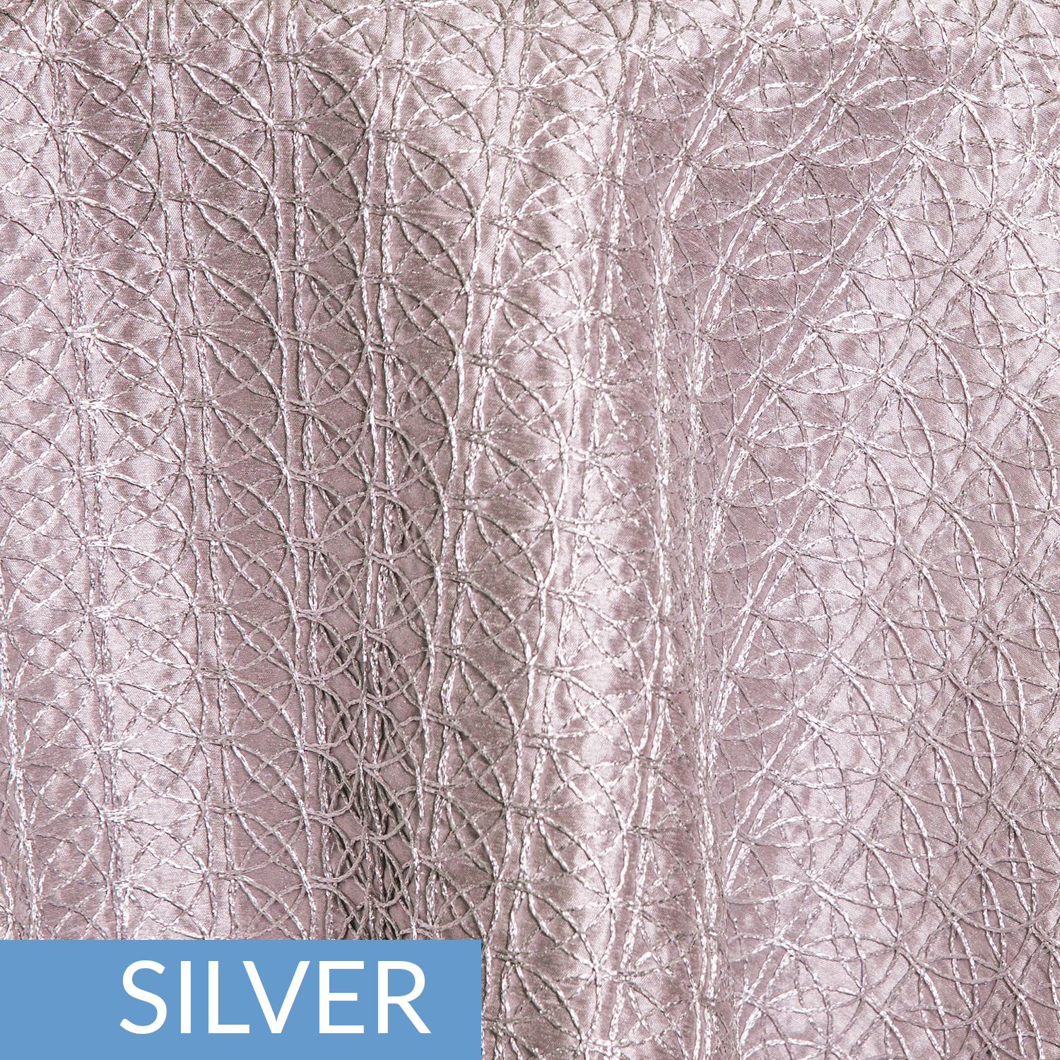 Our DreamCatcher fabric adds a soft, luxuriant look to your decor. The threadwork overlay looks like dream catchers sewn together. And the vibrant, luxurious cloth behind the thread work adds dimension and visual interest. Available in different color options, the 106” width makes it wonderful for drapery and covering structural elements. Pair with booth kits, backdrop kits, or drapery kits (all sold separately). The fabric is 100% polyester.