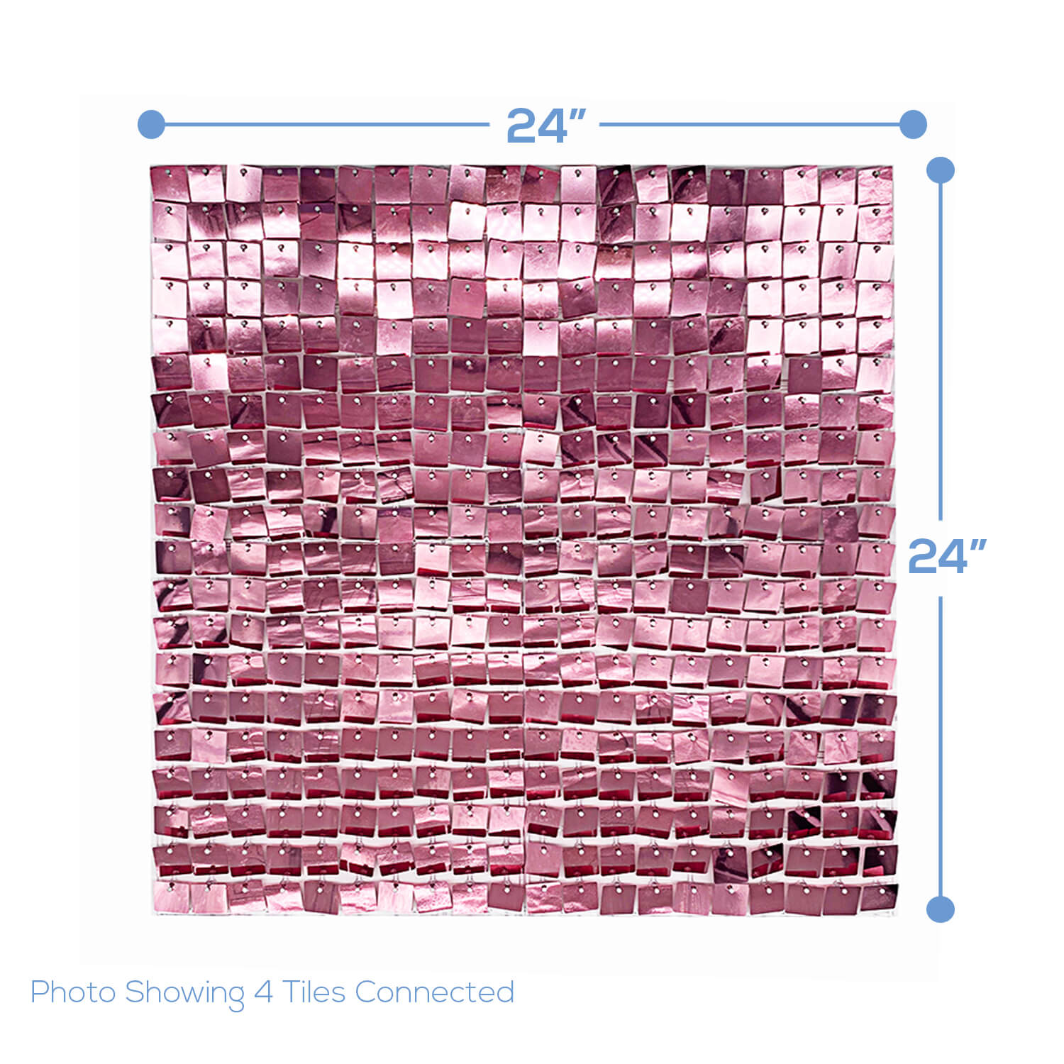 Easy Connect Shimmer Wall Panels w/ Transparent Grid Backing & Square Sequins - 12 Tiles - Rose Gold / Blush[SMR-RGLD-BLSH]