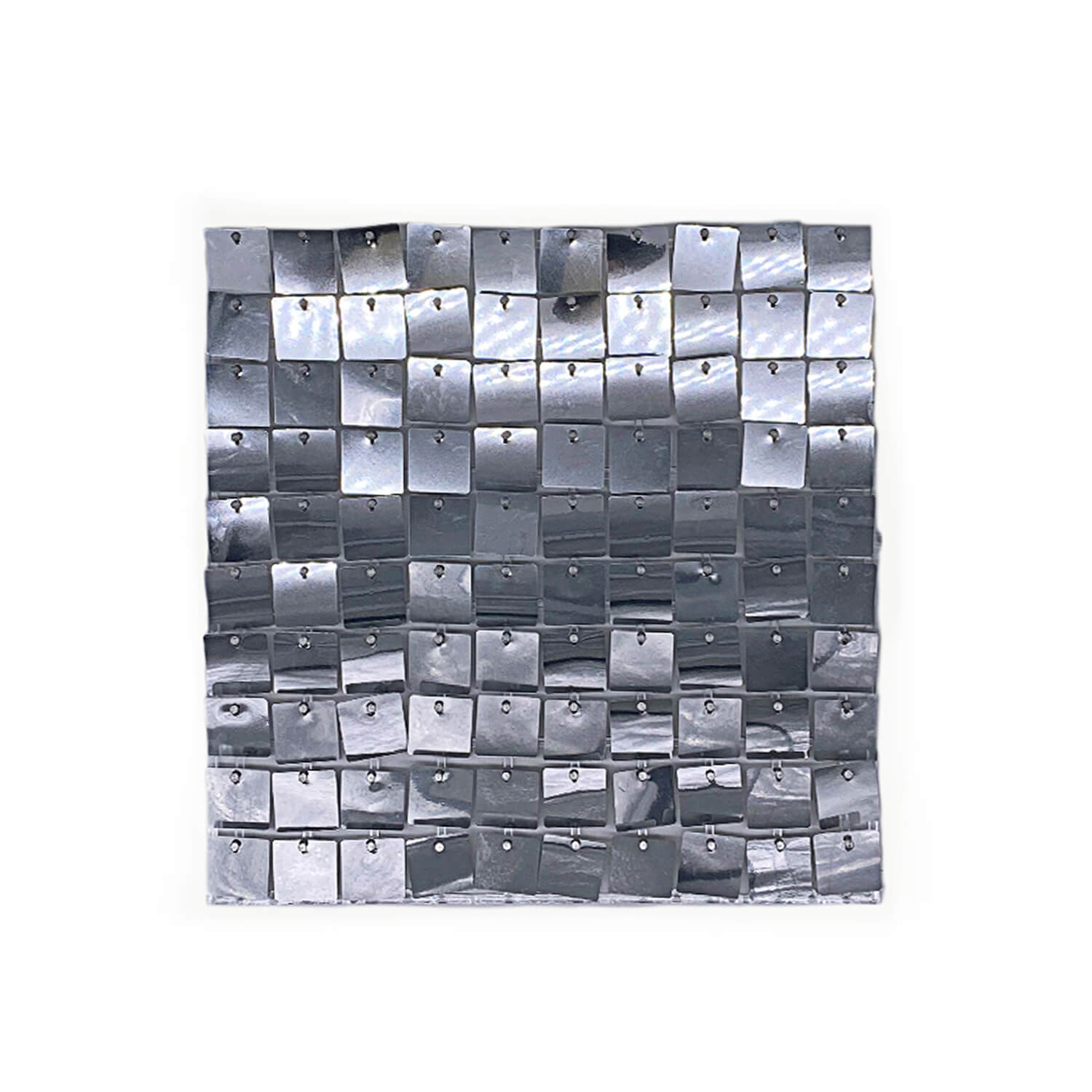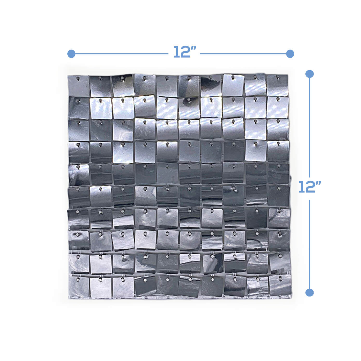 Easy Connect Shimmer Wall Panels w/ Transparent Grid Backing & Square Sequins - 12 Tiles - Silver[SMR-SIL]