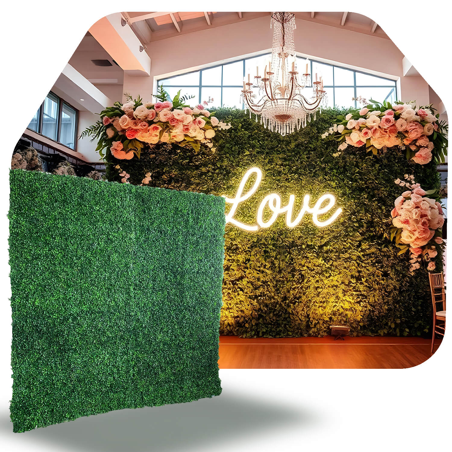 Our new greenery panel is just what you need to take your event to the next level! Super lush and eye-catching, the panel comes with a 4” rod pocket and side ties to secure to your pipe structure. Just unroll, fluff, and hang! Use one panel if you just want to create a bold accent wall or multiple to create an immersive backdrop for photoshoots. Weddings and anniversaries, birthday parties and sweet sixteens, this greenery panel will fulfill all of your decorative needs.