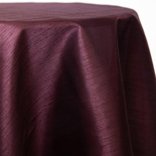 Elevate the look of your fabric décor with the shimmering, yet delicately soft look of satin. Rich in tone, these Capri tablecloths are versatile, making them easy to incorporate into many decorative themes and designs. This deep, eggplant purple colored cloth adds an elegant look to your tables.