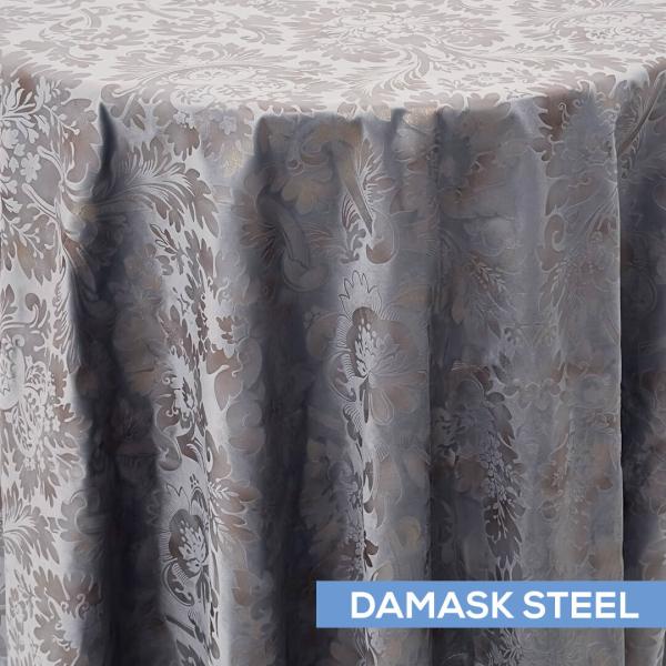 Elevate your table decor and leave a lasting impression with these embellished tablecloths. They radiate elegance and class, making them perfect for weddings, parties, dinners, tradeshows, corporate events, and more. They will quickly become a staple in your toolbox for table decor whether you're planning your own party or are an event designer. You can even stock them in your linen closet year round for home decor. The steel hue makes them especially classic.