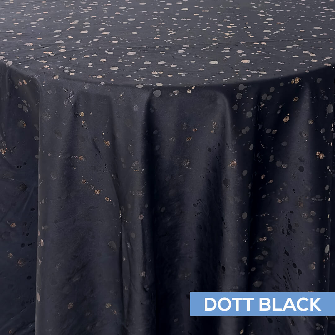 Elevate your table decor and leave a lasting impression with these embellished tablecloths. They radiate elegance and class, making them perfect for weddings, parties, dinners, tradeshows, corporate events, and more. They will quickly become a staple in your toolbox for table decor whether you're planning your own party or are an event designer. You can even stock them in your linen closet year round for home decor. The black hue makes them especially sleek.