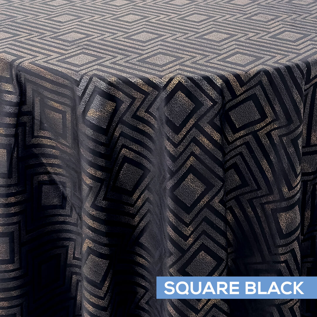 Elevate your table decor and leave a lasting impression with these embellished tablecloths. They radiate elegance and class, making them perfect for weddings, parties, dinners, tradeshows, corporate events, and more. They will quickly become a staple in your toolbox for table decor whether you're planning your own party or are an event designer. You can even stock them in your linen closet year round for home decor. The black hue makes them especially sleek.