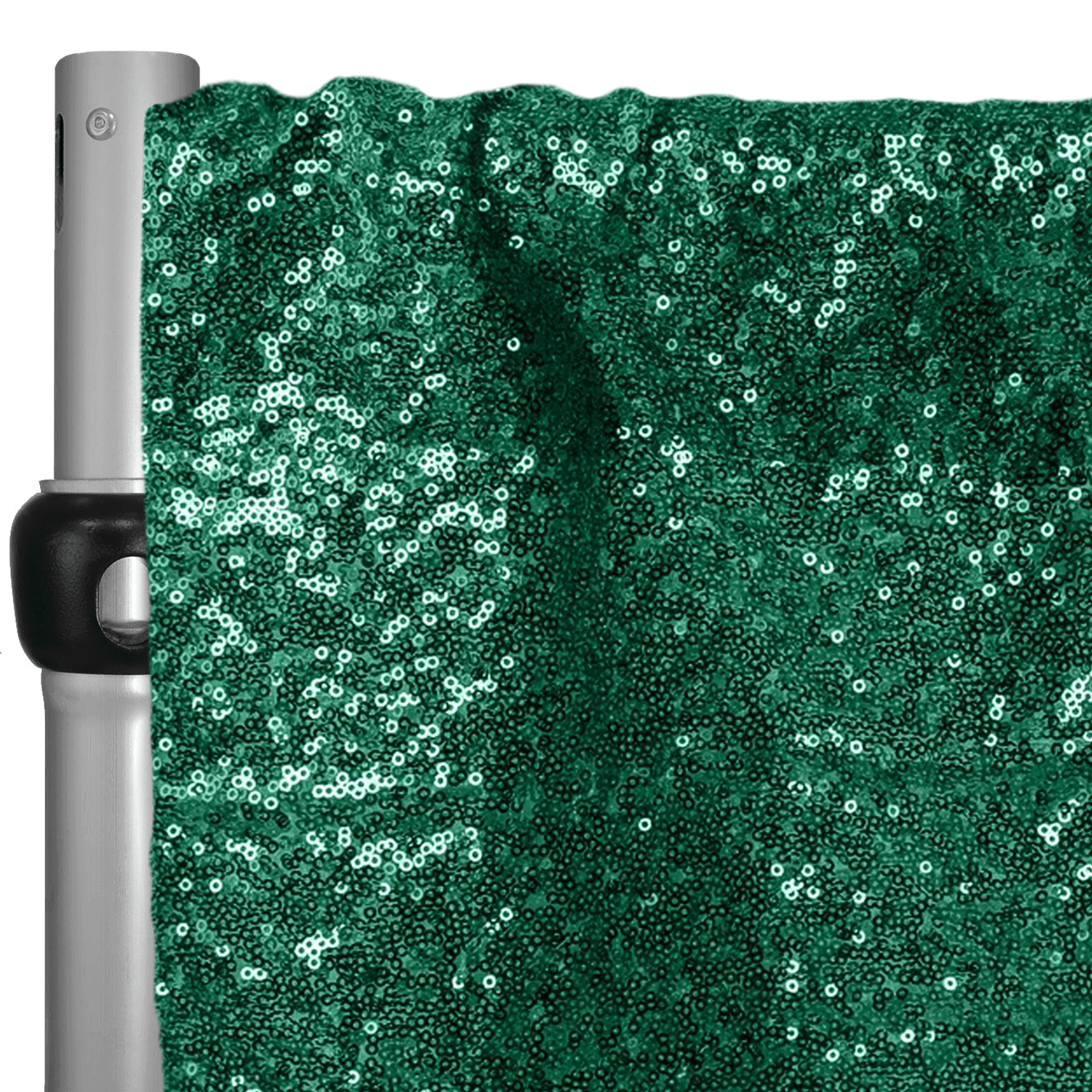 These tightly stitched sequin backdrop curtains by Eastern Mills come with a 4" rod pocket.