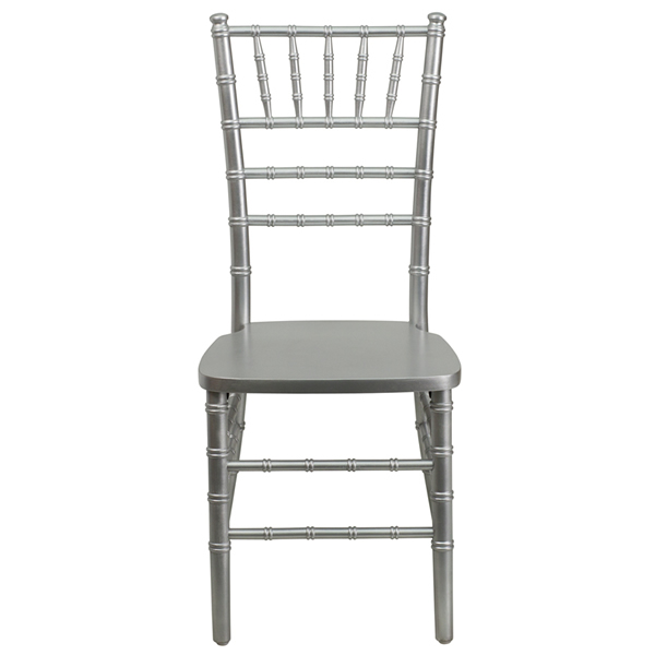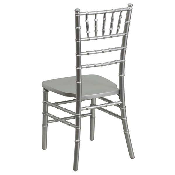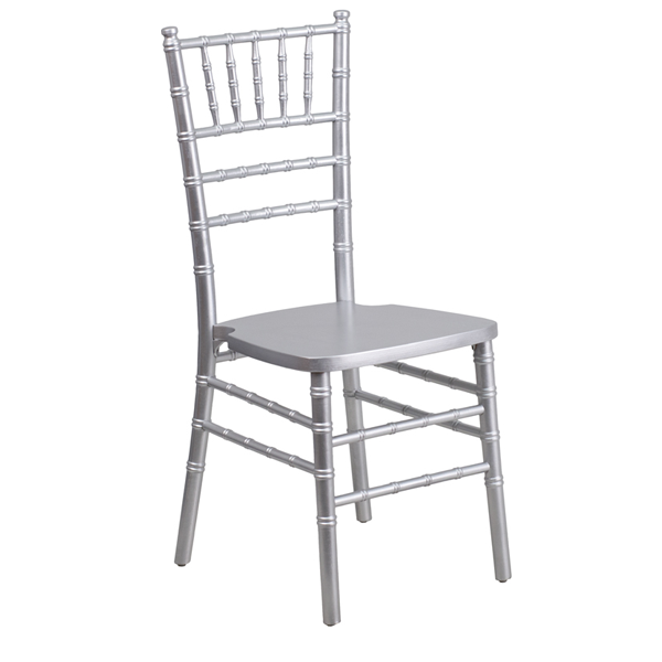 Give your space a classic look with a twist with these silver elegant wood Chiavari chairs. Our Chiavari EnvyChair™ is built to last, even with heavy commercial use. This silver wood chair requires minimal assembly that saves you time and money. Use our Chiavari chair covers to add even more decoration to this silver Chiavari chair.
