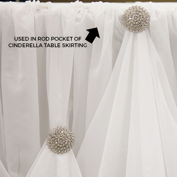Perfect the look of your decor theme with our extra 50ft rope for our Cinderella skirts. These Cinderella table skirts are a beautiful way to decorate and add elegance to your decor. Our extra 50ft of rope is strong and durable, but most of all, it is specifically designed to fit perfectly with our Cinderella skirts.
