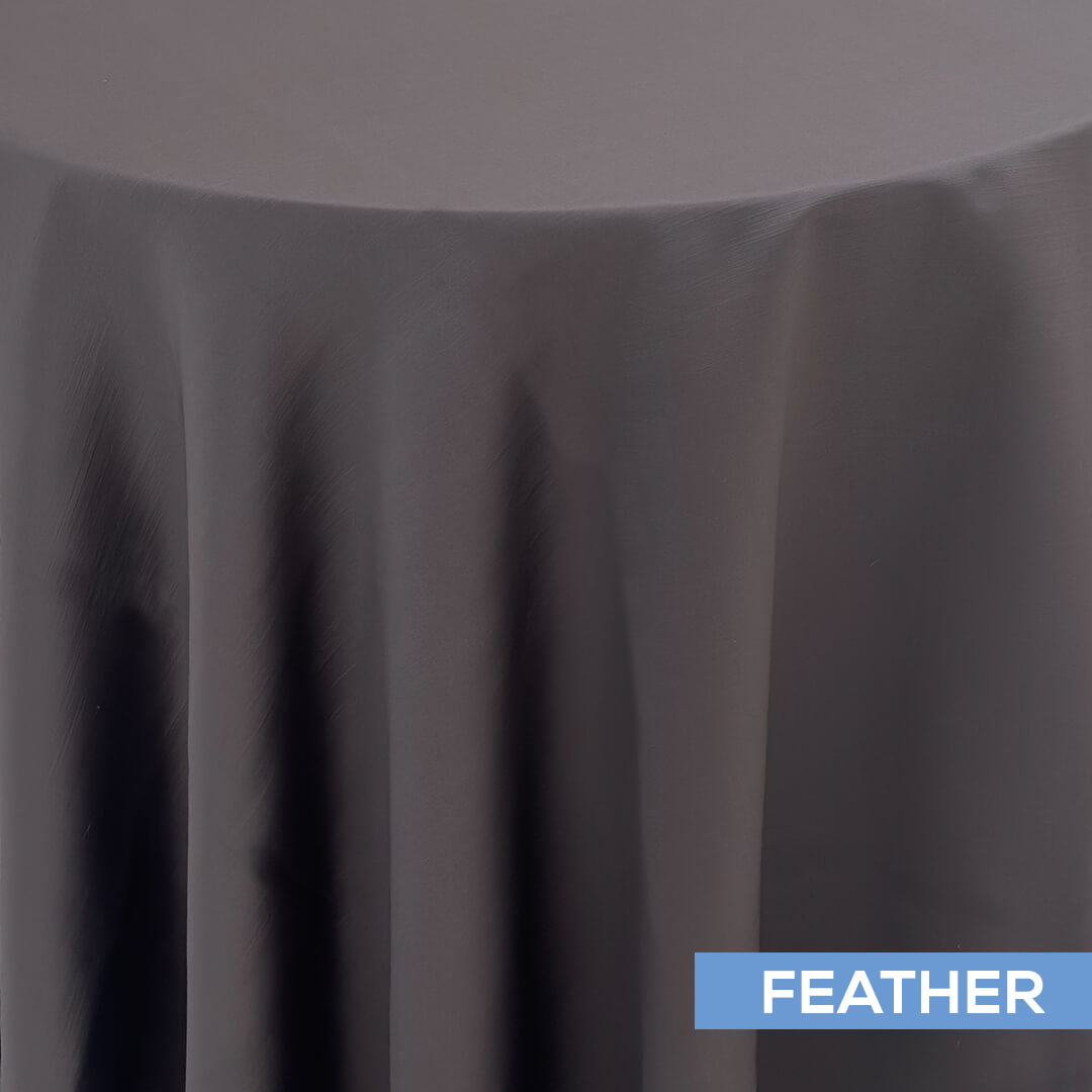 Add another touch of elegance to your event with some sleek tablecloths. They're perfect for weddings, parties, dinners, tradeshows, corporate events, and more. They will quickly become a staple in your toolbox for table decor whether you're planning your own party or are an event designer. You can even stock them in your linen closet year round for home decor. The feather hue makes them especially elegant.