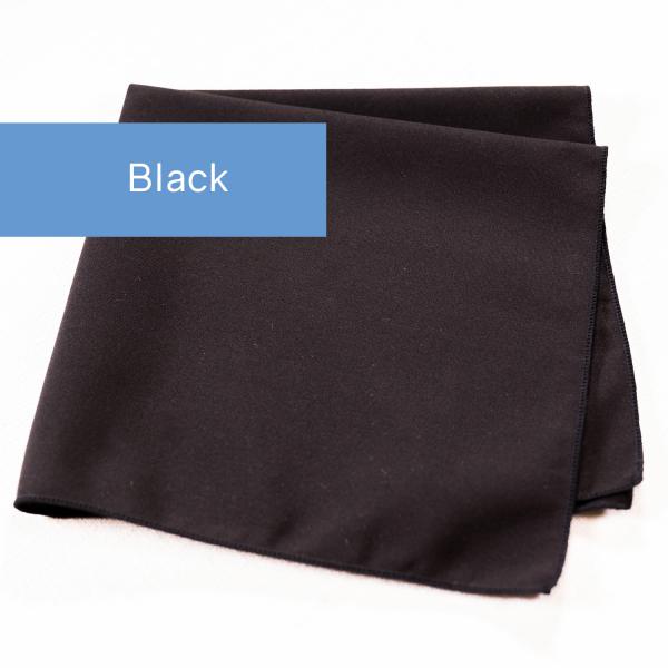 Dress your event and dinner tables with this wide polyester napkin that truly feels like cotton. Highly durable and made in the USA, this black napkin is a perfect addition to your décor, and holds up for reuse.