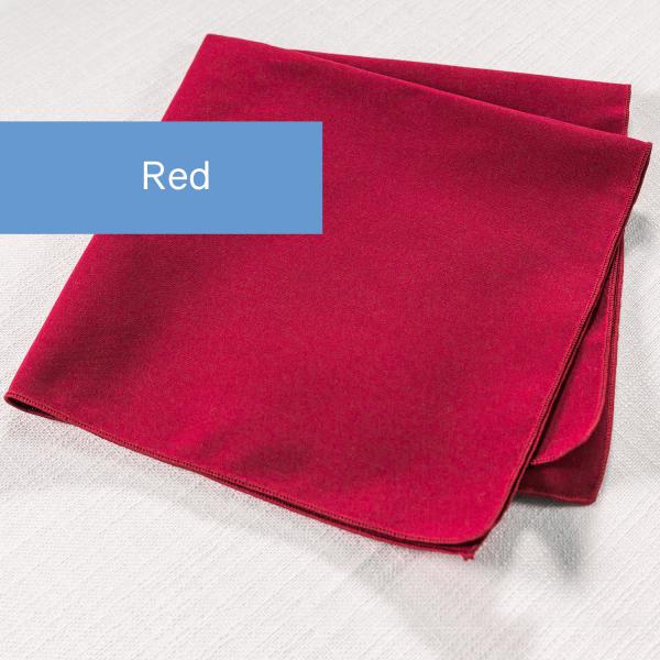 Dress your event and dinner tables with this wide polyester napkin that truly feels like cotton. Highly durable and made in the USA, this brilliant red colored napkin is a perfect addition to your décor, and holds up for reuse.