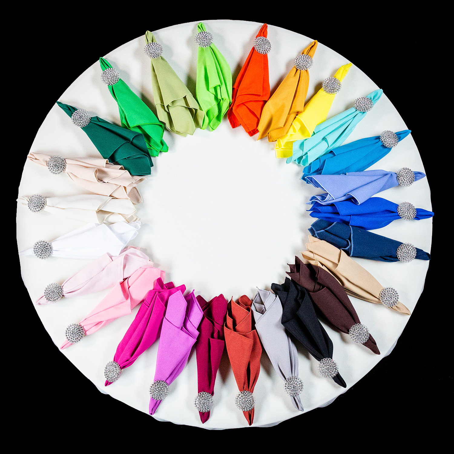 DESCRIPTIVE POINTS: High quality wide width Polyester Napkin that Feels Like Cotton is perfect for everyday use as a feature Napkin or a base Napkin. With its high quality heavy durable finish this fabric can be used in the hotel and hospitality industry, event rental, event design, wedding rental and event decoration. Top quality, made in USA and ready for repeated use.