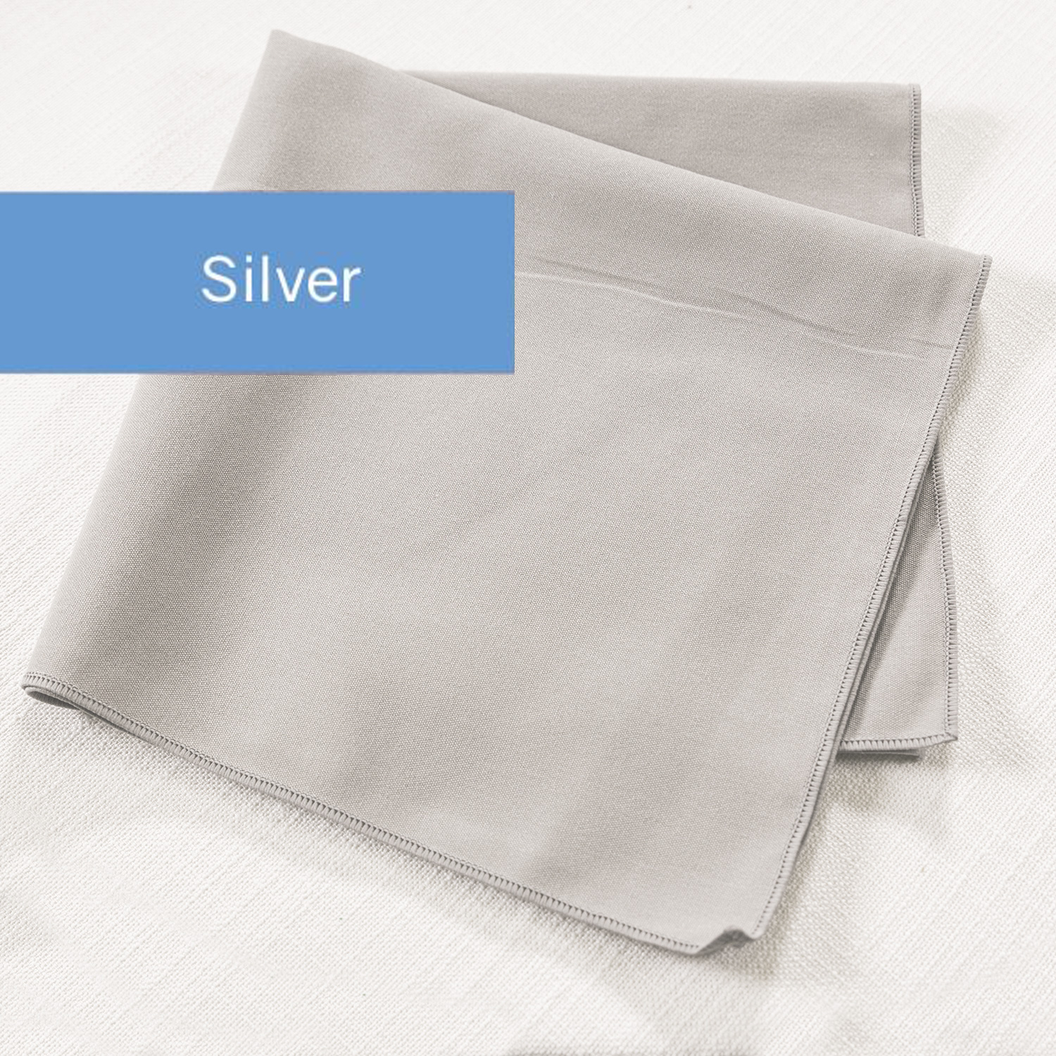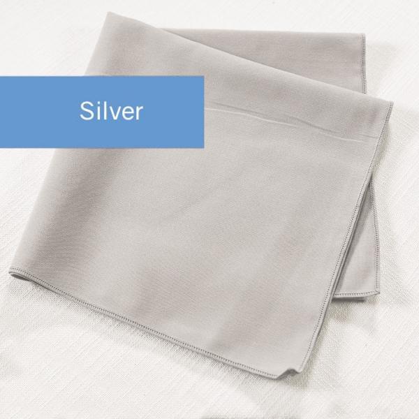 Dress your event and dinner tables with this wide polyester napkin that truly feels like cotton. Highly durable and made in the USA, these silver colored napkins are the perfect addition to your décor, and hold up well for reuse.