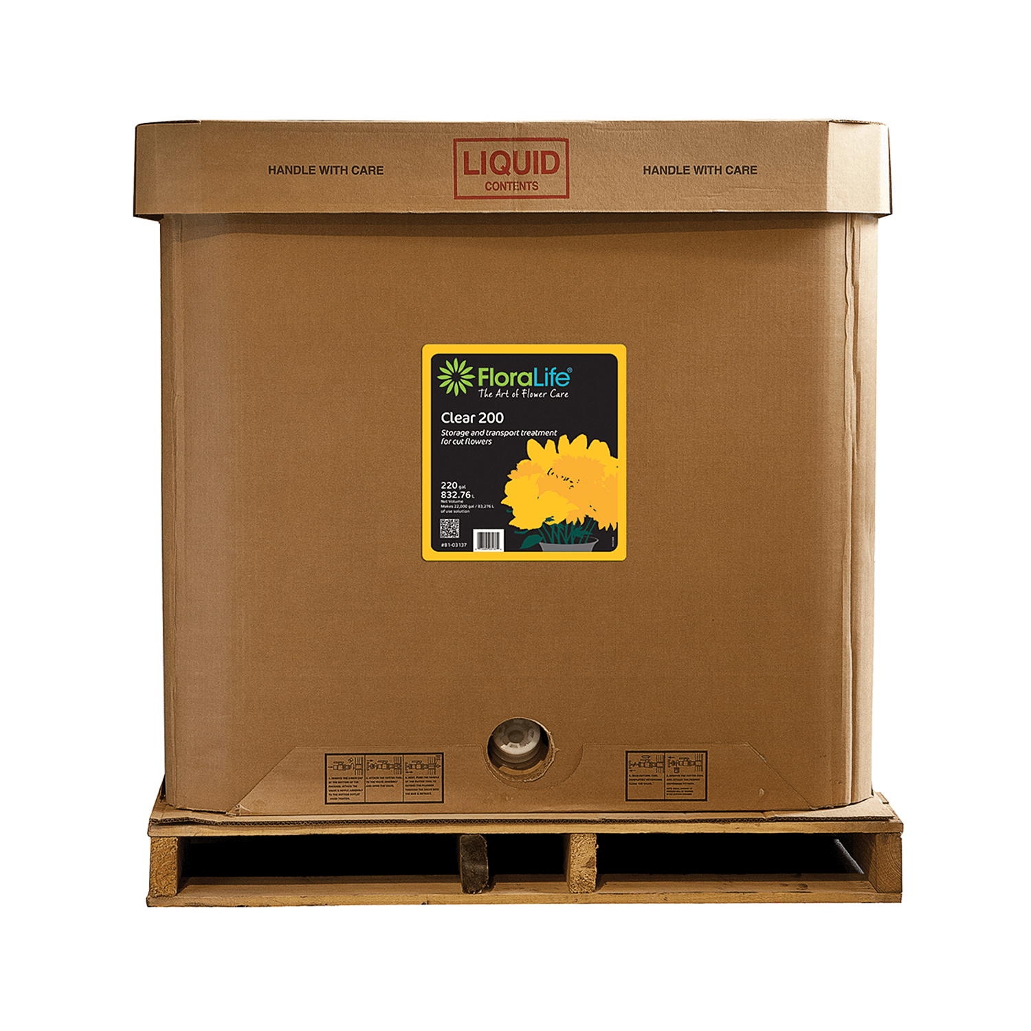 • Effective at room temperature and in storage coolers. • Helps reduce flower scrap and customer credit adjustments. • Product is clear in all water types. • Can be used with all flower varieties. • 220 gallon tote • 4 week lead time • Actual freight charges apply