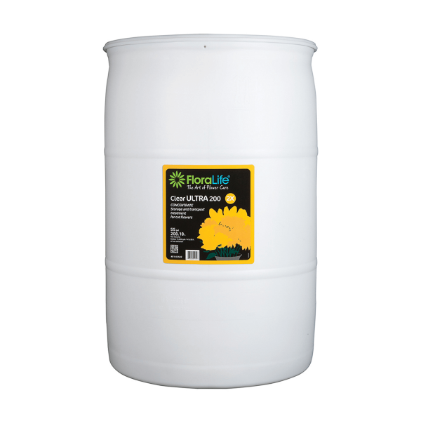 • Effective at room temperature and in storage coolers. • Finished product is clear in all water types. • Can be used with all flower varieties. • Reduces freight costs by shipping fewer containers. • Half the amount of space required for product storage. • 55 gallon drum