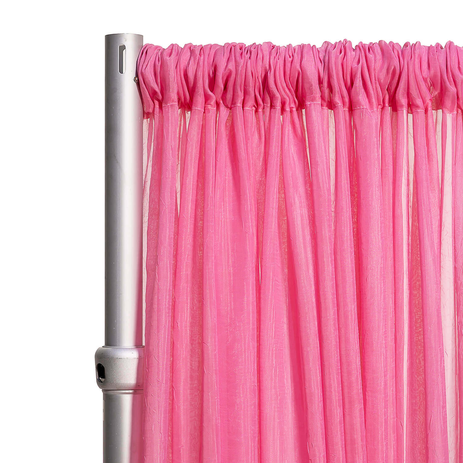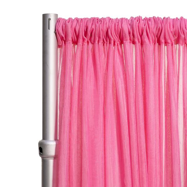 Accent and soften the ambiance with these spectacular curtain panels. The sheer features natural edges and is the same super-premium quality used in our backdrops and ceiling draping. And with 4" pocket rods on each end, you can hang them anywhere! Whether used as a backdrop or as a partition, they are just the lovely additions that the joyous occasion needs. Perfect for rustic or posh events, winter or spring. For best appearance when using as drape, we recommend using 4 or more pieces of 10ft wide sheer for every 10 feet of pipe.