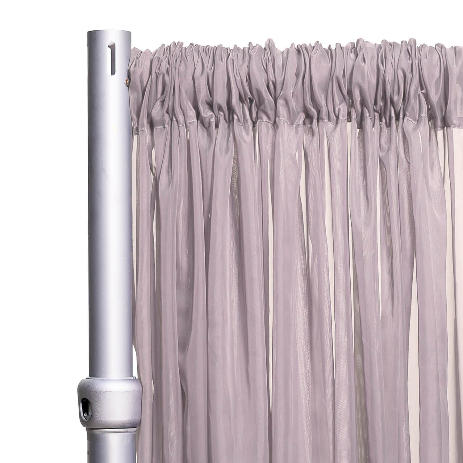 Accent and soften the ambiance with these spectacular curtain panels. The sheer features natural edges and is the same super-premium quality used in our backdrops and ceiling draping. And with 4" pocket rods on each end, you can hang them anywhere! Whether used as a backdrop or as a partition, they are just the lovely additions that the joyous occasion needs. Perfect for rustic or posh events, winter or spring. For best appearance when using as drape, we recommend using 4 or more pieces of 10ft wide sheer for every 10 feet of pipe.