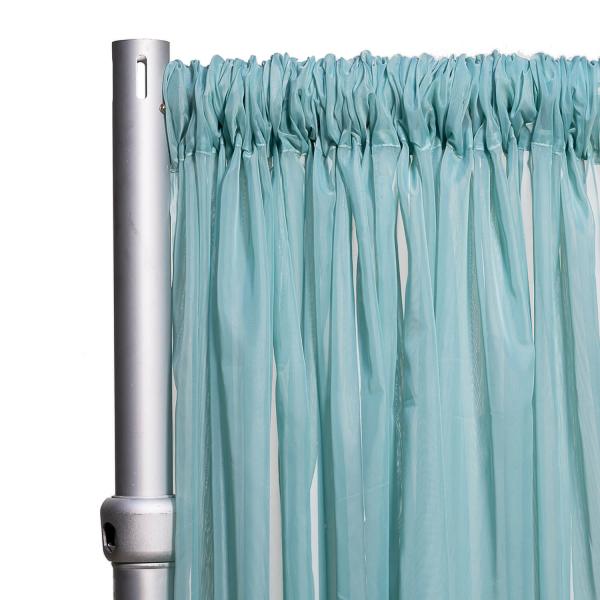 Accent and soften the ambiance with these spectacular curtain panels. The sheer features natural edges and is the same super-premium quality used in our backdrops and ceiling draping. And with 4" pocket rods on each end, you can hang them anywhere! Whether used as a backdrop or as a partition, they are just the lovely additions that the joyous occasion needs. Perfect for rustic or posh events, winter or spring. For best appearance when using as drape, we recommend using 4 or more pieces of 10ft wide sheer for every 10 feet of pipe.