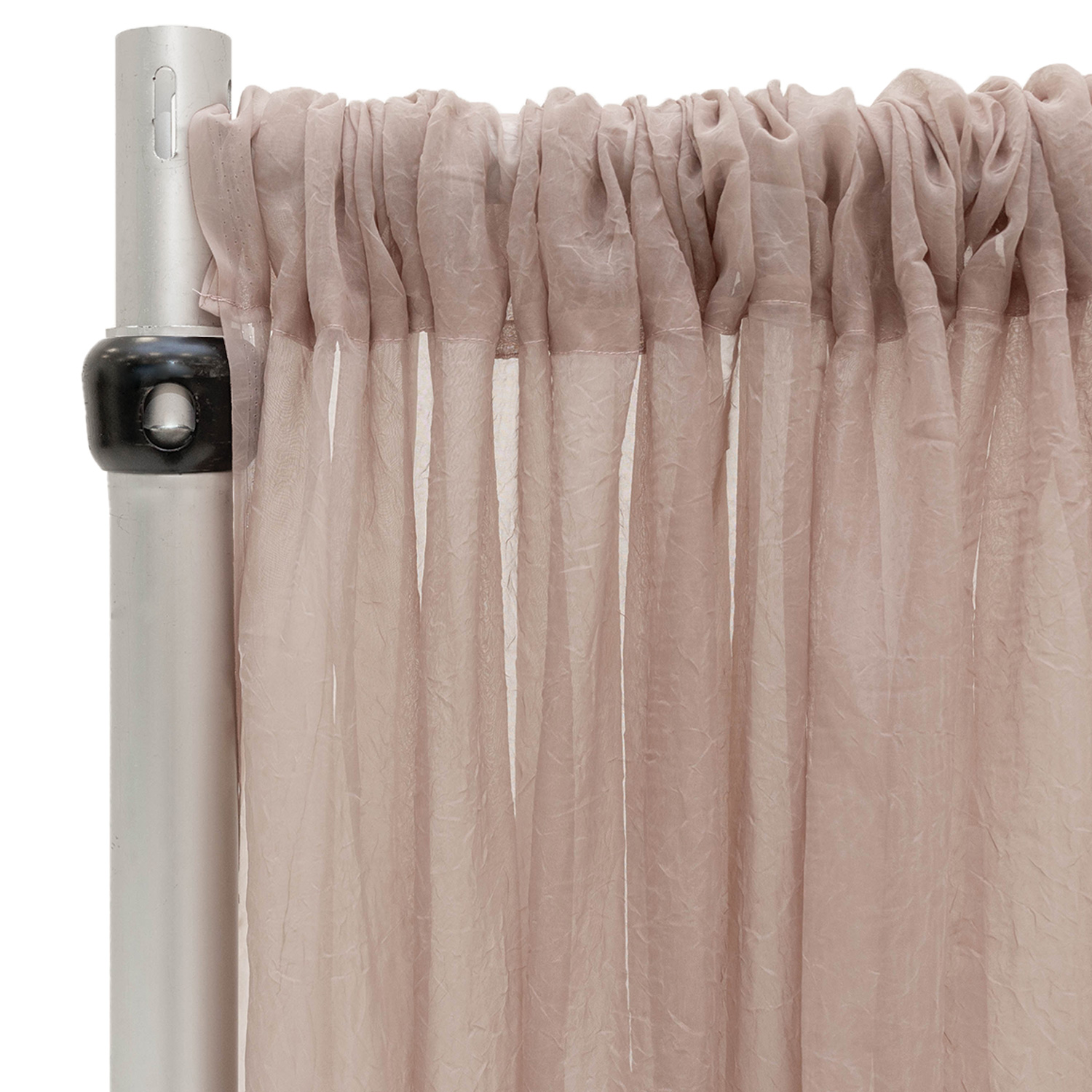 Accent and soften the ambiance with these spectacular curtain panels. The sheer features natural edges and is the same super-premium quality used in our backdrops and ceiling draping. And with 4" pocket rods on each end, you can hang them anywhere! Whether used as a backdrop or as a partition, they are just the lovely additions that the joyous occasion needs. Perfect for rustic or posh events, winter or spring. For best appearance when using as drape, we recommend using 4 or more pieces of 10ft wide sheer for every 10 feet of pipe.