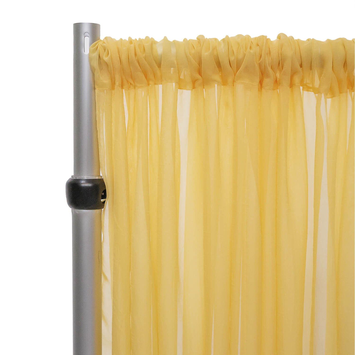 Accent and soften the ambiance with these spectacular curtain panels. The sheer features natural edges and is the same super-premium quality used in our backdrops and ceiling draping. And with 4" pocket rods on each end, you can hang them anywhere! Whether used as a backdrop or as a partition, they are just the lovely additions that the joyous occasion needs. Perfect for rustic or posh events, winter or spring. For best appearance when using as drape, we recommend using 4 or more pieces of 10ft wide sheer for every 10 feet of pipe.
