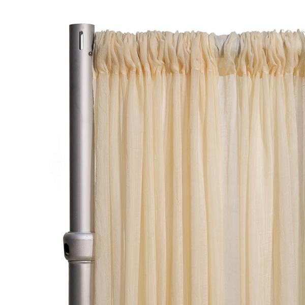 Accent and soften the ambiance with these spectacular curtain panels. The sheer features natural edges and is the same super-premium quality used in our backdrops and ceiling draping. And with 4" pocket rods on each end, you can hang them anywhere! Whether used as a backdrop or as a partition, they are just the lovely additions that the joyous occasion needs. Perfect for rustic or posh events, winter or spring. For best appearance when using as drape, we recommend using 4 or more pieces of 10ft wide sheer for every 10 feet of pipe.
