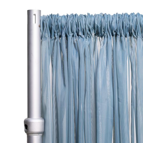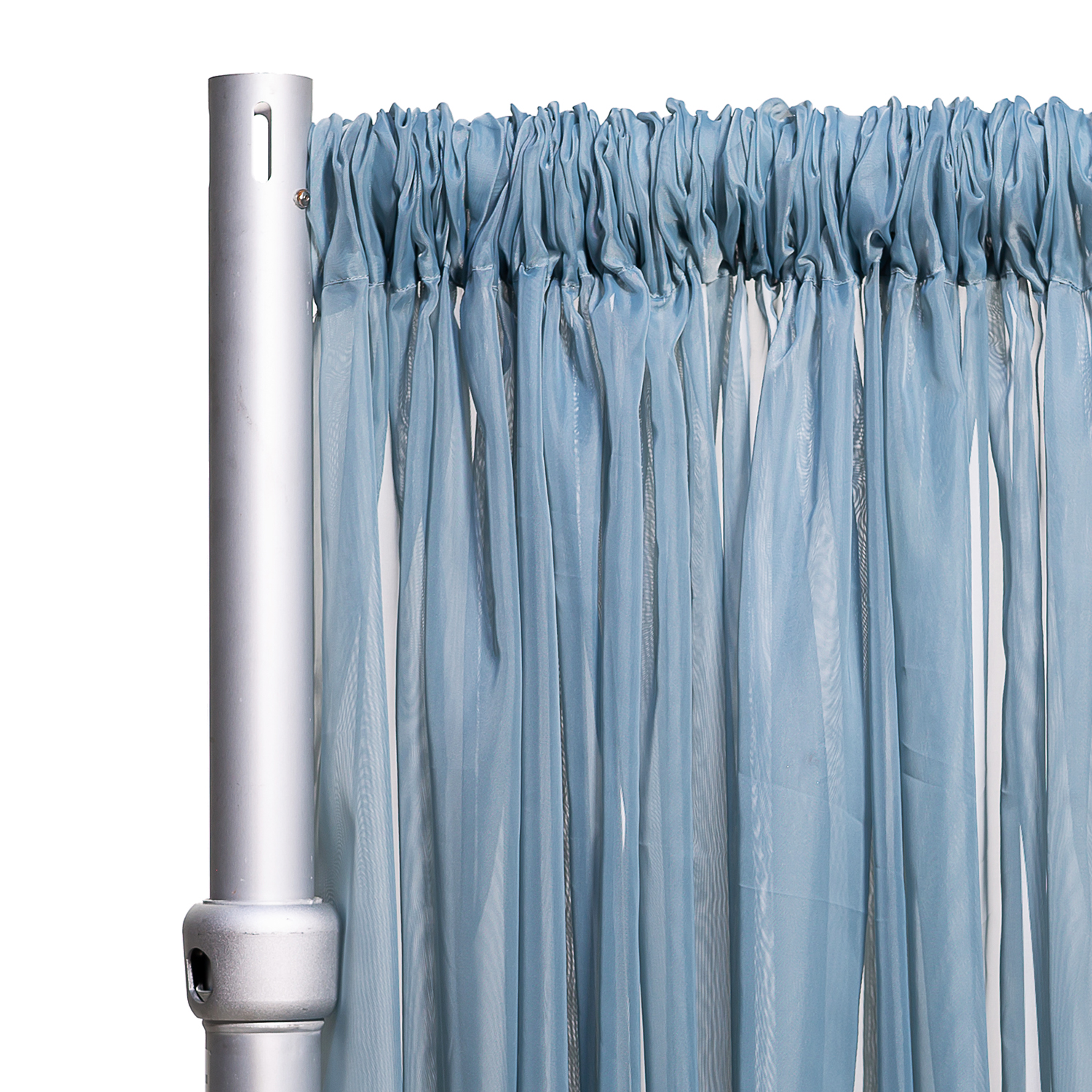 Accent and soften the ambiance with these spectacular curtain panels. The sheer features natural edges and is the same super-premium quality used in our backdrops and ceiling draping. And with 4" pocket rods on each end, you can hang them anywhere! Whether used as a backdrop or as a partition, they are just the lovely additions that the joyous occasion needs. Perfect for rustic or posh events, winter or spring. For best appearance when using as drape, we recommend using 4 or more pieces of 10ft wide sheer for every 10 feet of pipe.