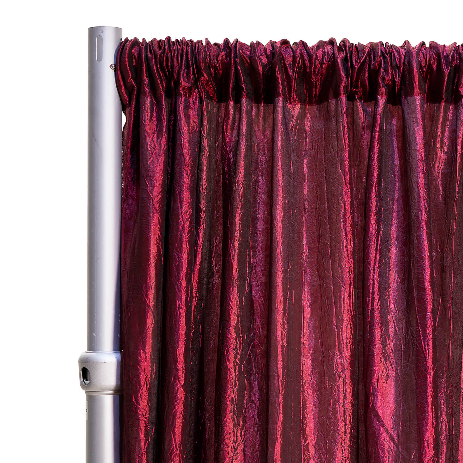 Accent and soften the ambience with these spectacular curtain panels. The taffeta features natural edges and is the same super-premium quality used in our backdrops and ceiling draping. And with 4" pocket rods on each end, you can hang them anywhere! Whether used as a backdrop or as a partition, they are just the lovely additions that the joyous occasion needs. Perfect for rustic or posh events, winter or spring. For best appearance when using as drape, we recommend using 3 pieces of 9 1/2 ft wide Taffeta for every 10 feet of pipe.