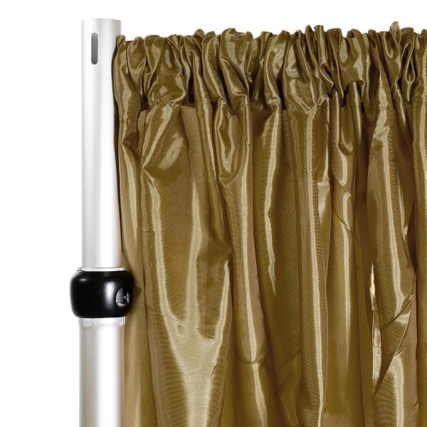 Accent and soften the ambience with these spectacular curtain panels. The taffeta features natural edges and is the same super-premium quality used in our backdrops and ceiling draping. And with 4" pocket rods on each end, you can hang them anywhere! Whether used as a backdrop or as a partition, they are just the lovely additions that the joyous occasion needs. Perfect for rustic or posh events, winter or spring. For best appearance when using as drape, we recommend using 3 pieces of 9 1/2 ft wide Taffeta for every 10 feet of pipe.