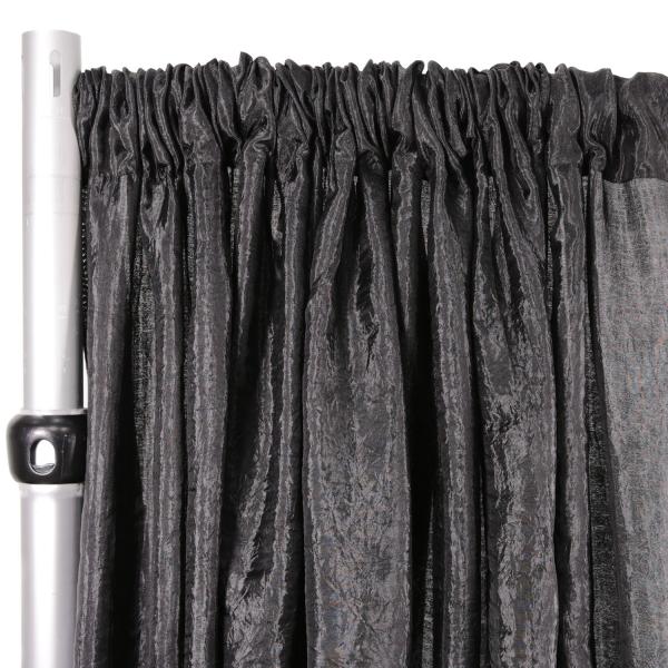 Add some texture and flair to your corporate events, tradeshows, weddings, and more with these crushed tergalet drape panels. Backdrops, ceiling panels, or partitions, the choice is yours! With a whole assortment of vibrant colors from which to choose, they are suitable for all manner of themes and events. The black hue also lends it an especially sleek look, helping to mask those otherwise drab surfaces and liven up those wide, empty spaces. A durable and shimmery fabric, tergalet is a wonderful substitute for satin and now fire retardant! Super-premium quality guaranteed.