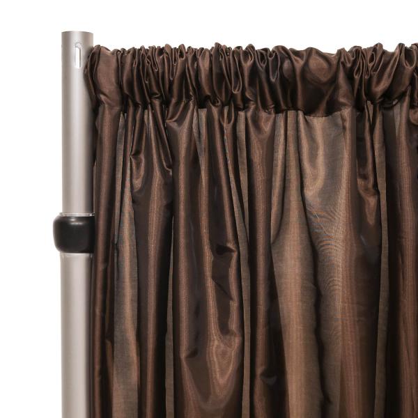 Accent and soften the ambience with these spectacular curtain panels. The taffeta features natural edges and is the same super-premium quality used in our backdrops and ceiling draping. And with 4" pocket rods on each end, you can hang them anywhere! Whether used as a backdrop or as a partition, they are just the lovely additions that the joyous occasion needs. Perfect for rustic or posh events, winter or spring. For best appearance when using as drape, we recommend using 3 pieces of 9 1/2 ft wide Taffeta for every 10 feet of pipe.