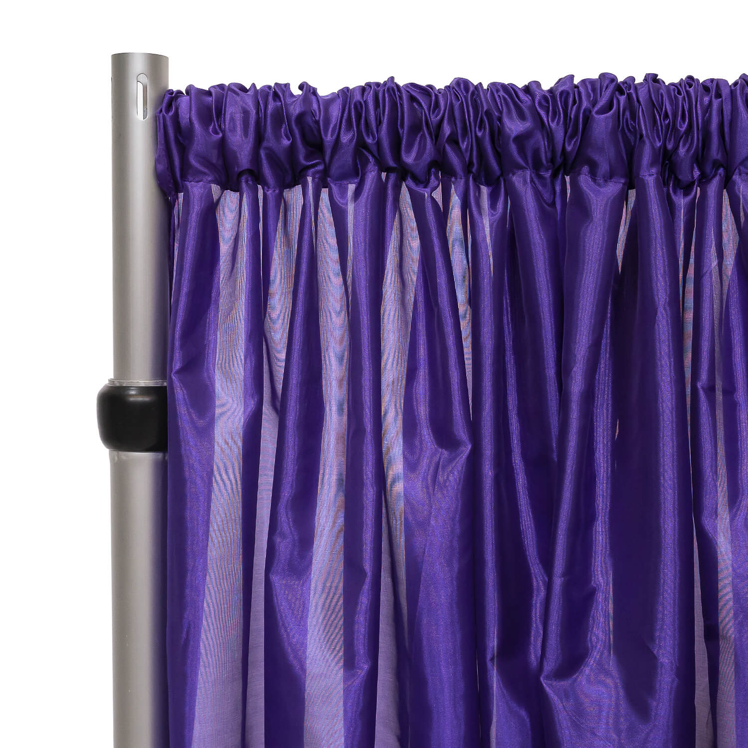 Accent and soften the ambience with these spectacular curtain panels. The taffeta features natural edges and is the same super-premium quality used in our backdrops and ceiling draping. And with 4" pocket rods on each end, you can hang them anywhere! Whether used as a backdrop or as a partition, they are just the lovely additions that the joyous occasion needs. Perfect for rustic or posh events, winter or spring. For best appearance when using as drape, we recommend using 3 pieces of 9 1/2 ft wide Taffeta for every 10 feet of pipe.