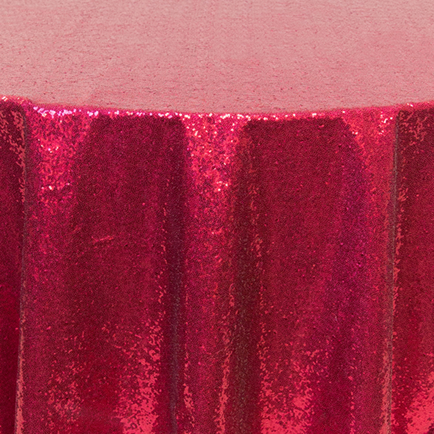 Our fuchsia round sequin tablecloth gives your space a shining modern look We design our fuchsia round sequin tablecloth with the highest quality polyester and dazzling sequins. Our sequin fabrics contain more sequins than competing brands. This fuchsia round sequin cover is 126” in diameter and heavy in weight.