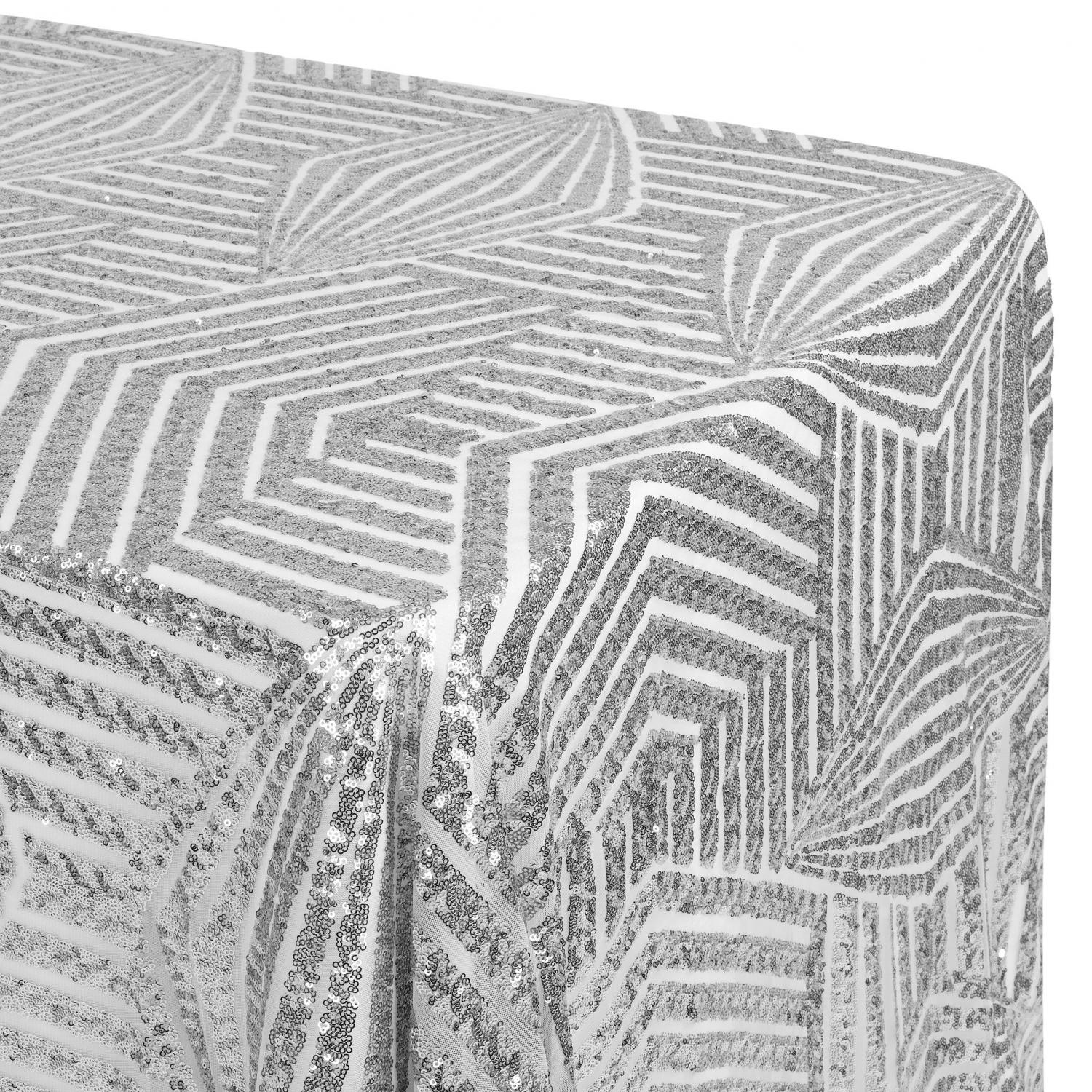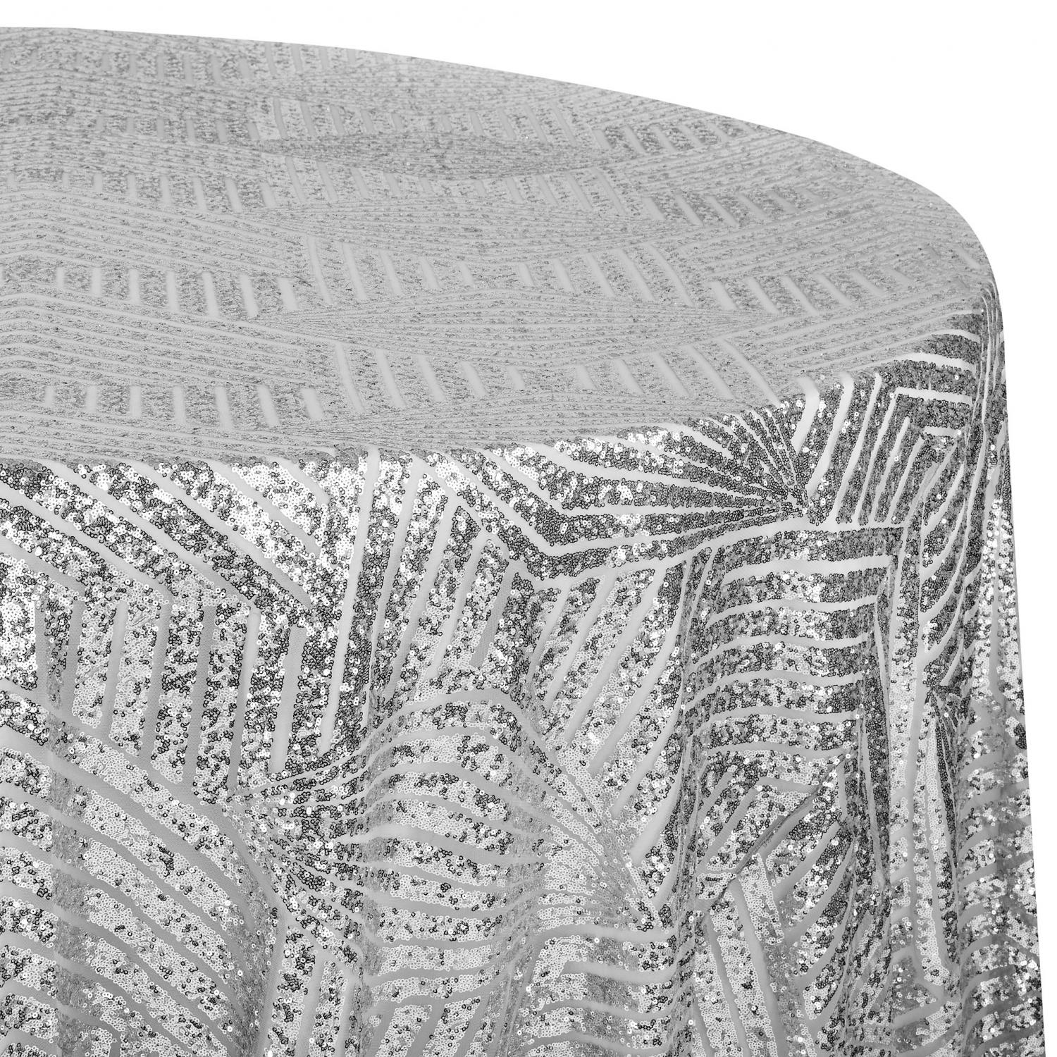 Add some texture and sequined flair to your corporate events, tradeshows, weddings, and more with these Geometric Lines Sequin Tablecloth. They are suitable for all manner of themes and events. The silver hue also lends it an especially elegant and classic look, helping to mask those otherwise drab surfaces and liven up those wide, empty spaces. This glistening addition is sure to wow your guests.
