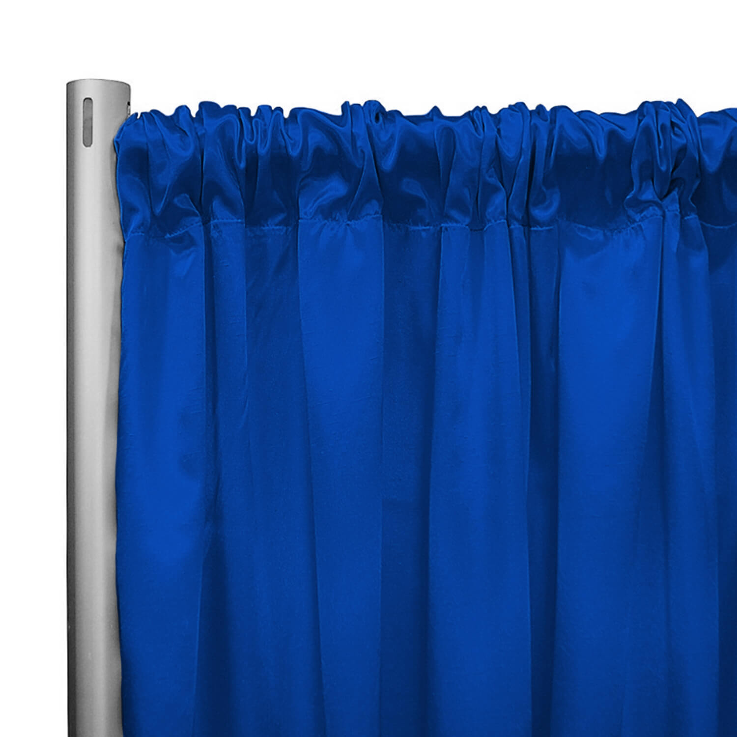 Add some texture and flair to your corporate events, tradeshows, weddings, and more with this inherently fire retardant, extra wide Elite Taffeta draping fabric by Eastern Mills. Backdrops, ceiling panels, or partitions, the choice is yours! With a whole assortment of vibrant colors from which to choose, they are suitable for all manner of themes and events. The royal blue hue also lends it an especially majestic look, helping to mask those otherwise drab surfaces and liven up those wide, empty spaces. Super premium quality and natural edges guaranteed.