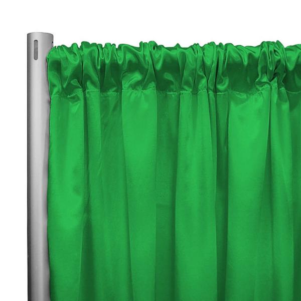 Add some texture and flair to your corporate events, tradeshows, weddings, and more with this inherently fire retardant, extra wide Elite Taffeta draping fabric by Eastern Mills. Backdrops, ceiling panels, or partitions, the choice is yours! With a whole assortment of vibrant colors from which to choose, they are suitable for all manner of themes and events. The kelly green hue also lends it an especially bright and cheerful look, helping to mask those otherwise drab surfaces and liven up those wide, empty spaces. Super premium quality and natural edges guaranteed.